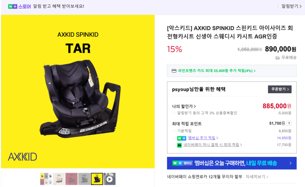 아빠로서 가장 먼저 확정 지은 품목은 바로 **’카시트’**입니다.
